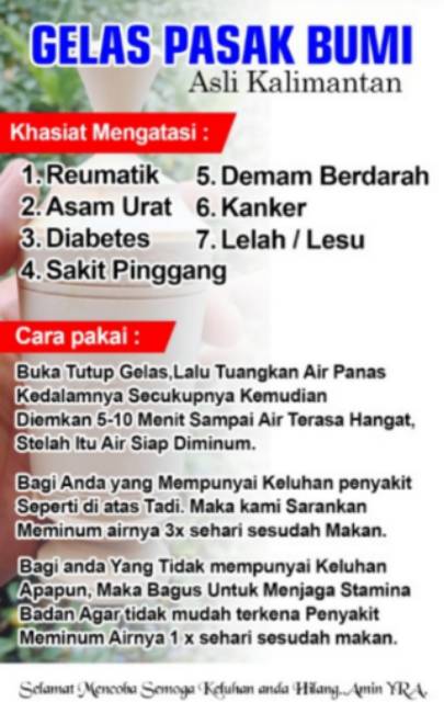 | Baca: Cangkir Akar Pasak Bumi Gelas Tongkat Ali Obat Asam Urat No 1 Indonesia |