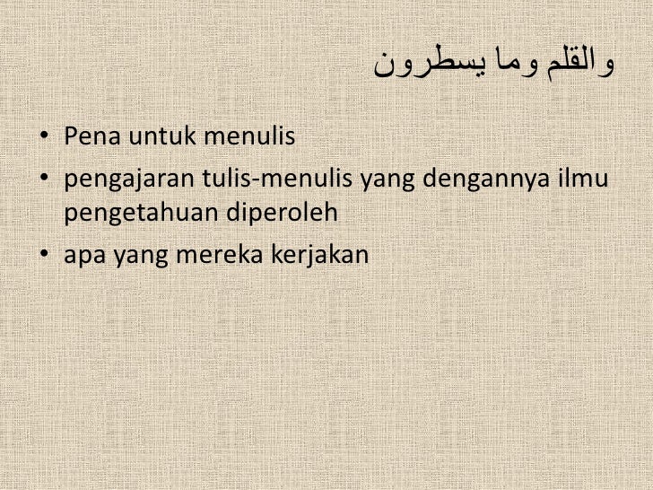 | Judul Surah: Tafsir Surat Al Qalam Ayat 1 Mochammad Dawud By the pen and what they inscribe You are not O Muhammad by the favor of your Lord a madman. |